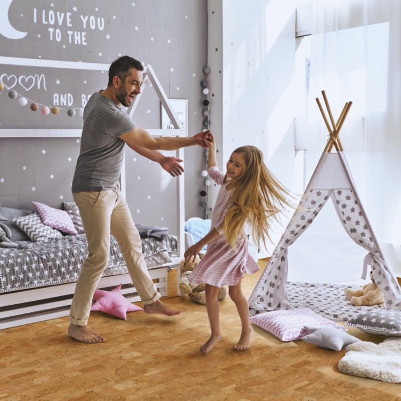 În plus, pluta are proprietăți antimicrobiene, ceea ce o face o alegere excelentă pentru copiii cu piele sensibilă sau cu alergii. De asemenea, podeaua din plută este foarte ușor de întreținut și se poate curăța cu ușurință cu o cârpă umedă. Stratul de protecție al plutei este foarte rezistent, astfel încât zgârieturile de la jucării sau chiar invazia tancurilor de jucărie nu vor fi o problemă.